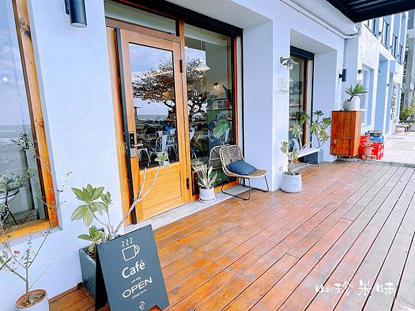 The white building adorned with "山男 Shān nán" is striking, featuring irregular windows that create a stunning backdrop for photos, reflecting the blue sky above. On busy days, only one representative is allowed to go in and register for a table, but while waiting outside, there's ample opportunity to capture that perfect shot.它的座位分成室內與戶外,如果坐戶外或外帶一律使用外帶杯盤。其實天氣好的時候或傍晚時分很多人都會選擇坐在外面看日落。